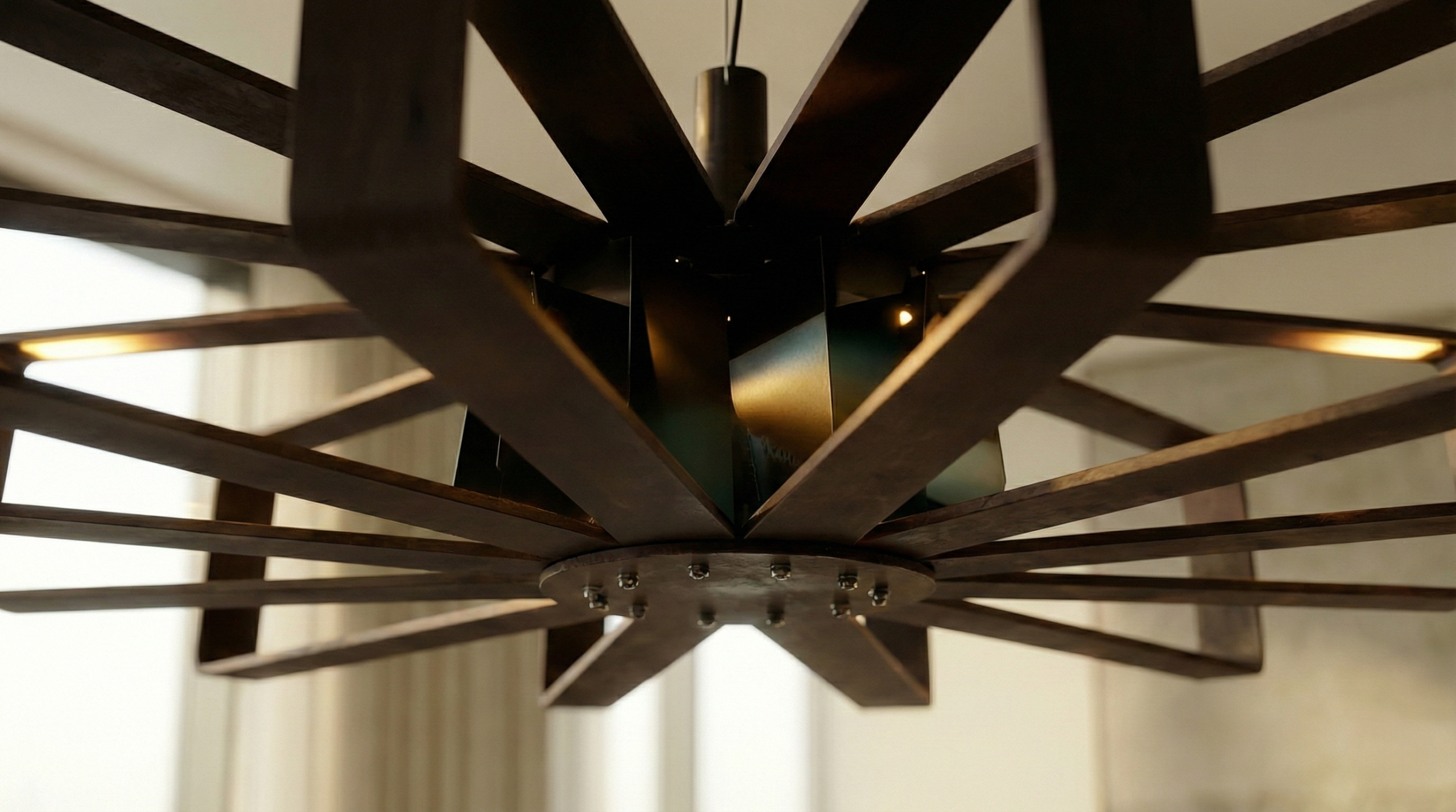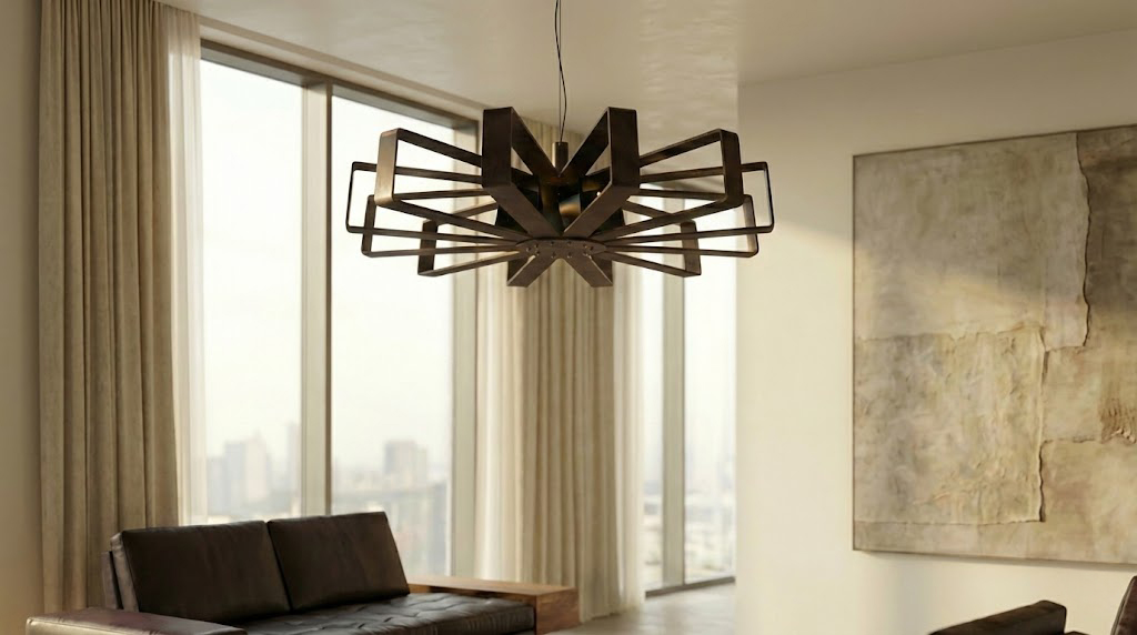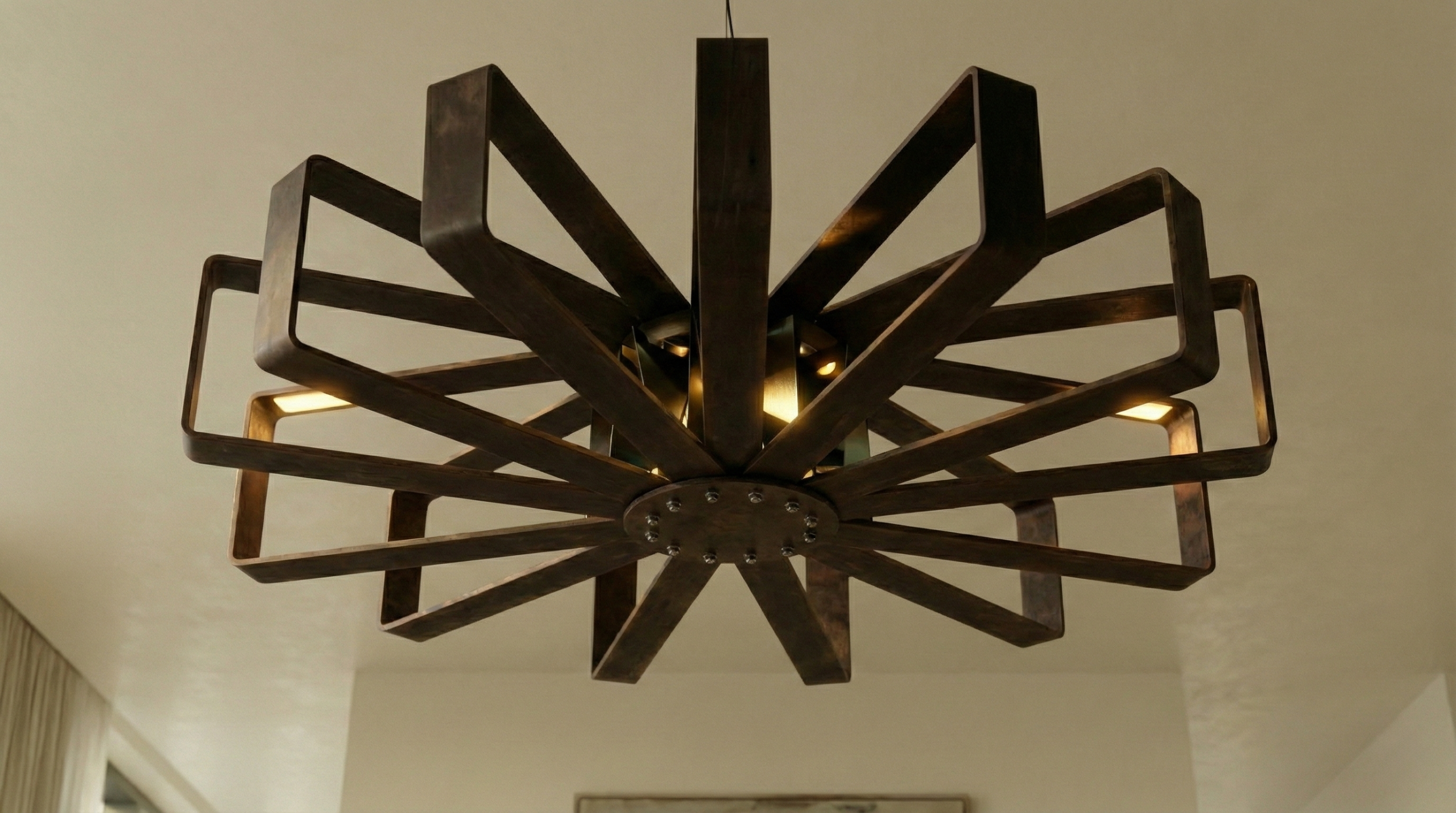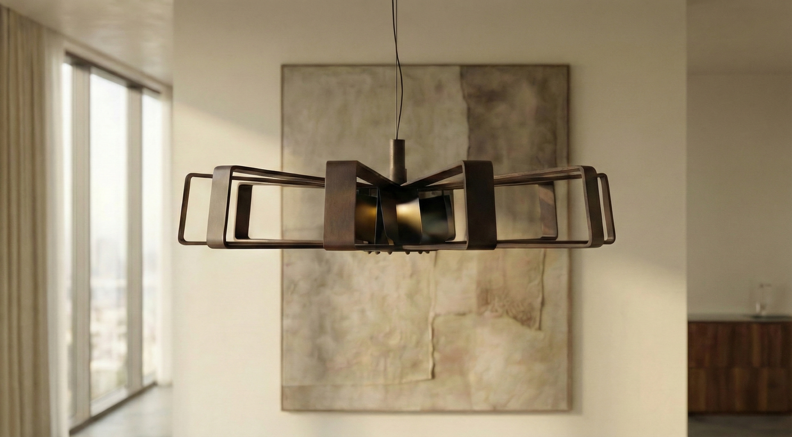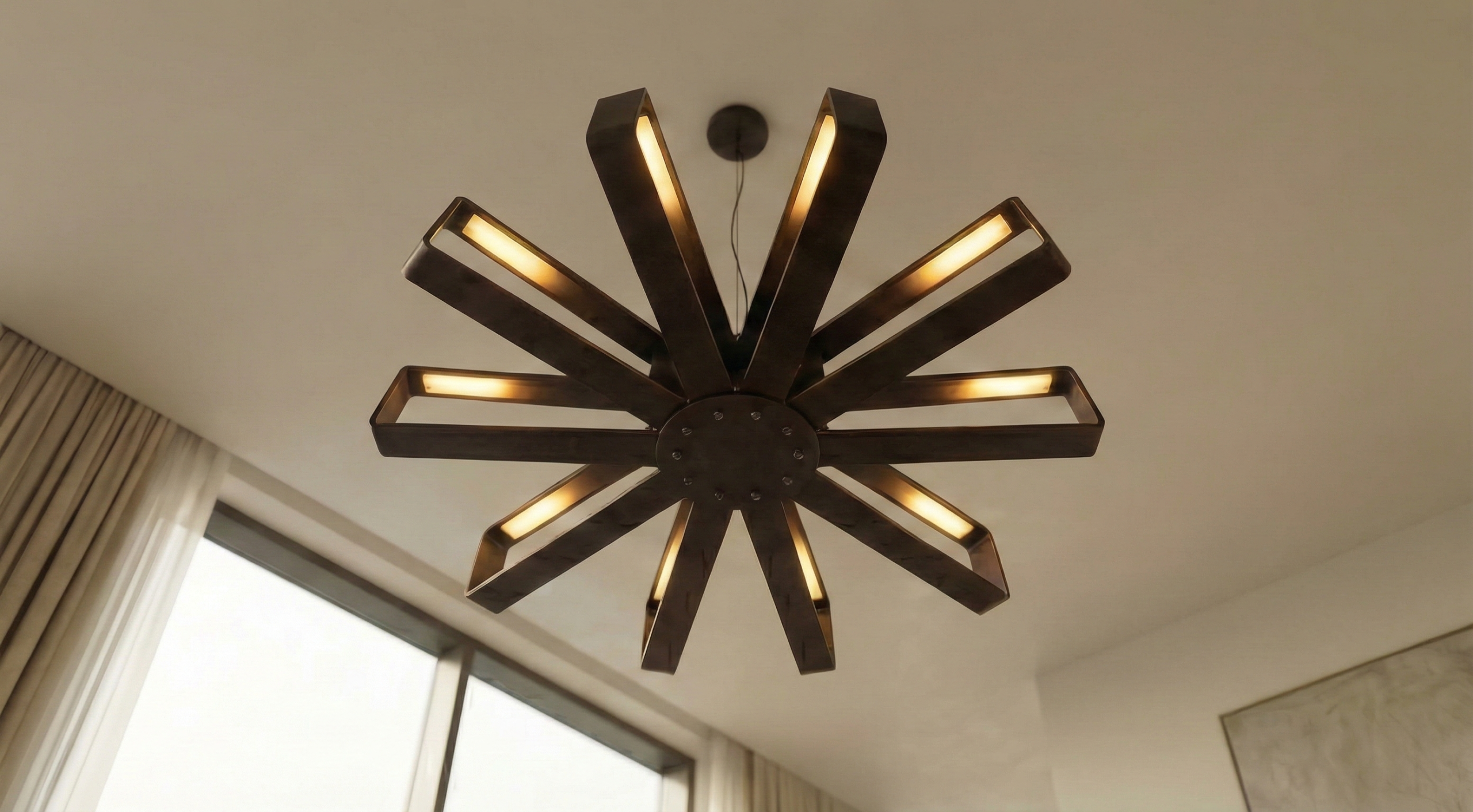 Tasarım Detayları: Merkezden dışa doğru yayılan şerit formundaki metal kollar, ışığın katmanlar arasında süzülerek mekana yumuşak ve dramatik bir şekilde yayılmasını sağlar. Pirinç malzemenin üzerine uygulanan usta işi bronz kaplama, ürüne yaşanmışlık hissi veren, sıcak ve mat bir doku kazandırır. Gövdedeki perçin detayları ise tasarıma güçlü, maskülen ve endüstriyel bir karakter ekler.