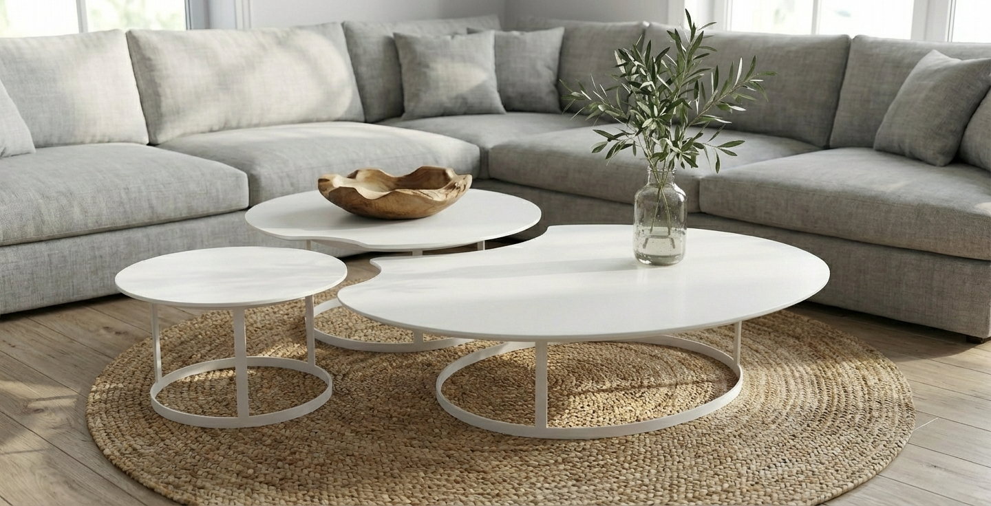 Akışkan formları ve beyazın zamansız şıklığıyla tasarlanan Own Sehpa Seti, yaşam alanlarına ferah bir dokunuş katıyor. İç içe geçebilen (nesting) üç parçalı yapısı sayesinde, hem geniş bir orta sehpa hem de ihtiyaç anında pratik bir servis elemanı olarak salonunuzun en fonksiyonel parçası olmaya aday.
